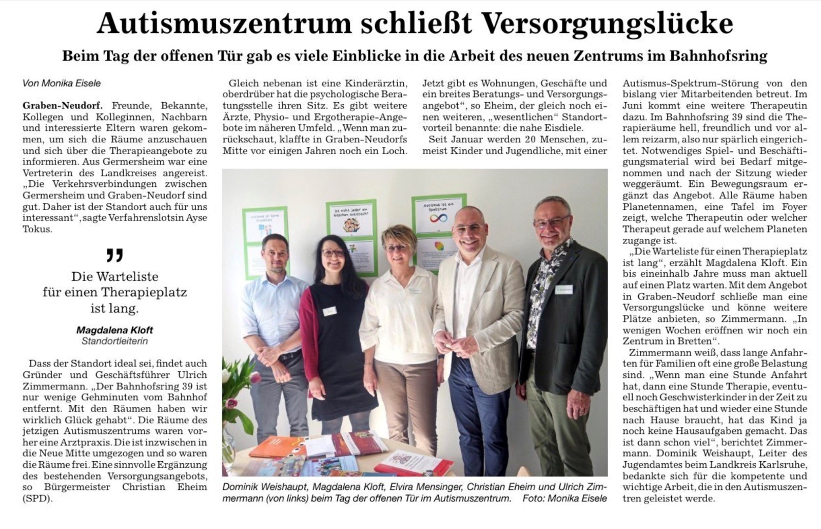 Ein großes Dankeschön an alle, die diesen besonderen Tag möglich gemacht haben – danke an alle Gästen für Ihr Interesse, an Bürgermeister Christian Eheim und an Dominik Weiskopf, Leiter des Jugendamtes Landkreis Karlsruhe für ihre Grußworte, sowie an die Therapeutische Leitung Daniela Hauser und die Standortleitung Magdalena Kloft mit ihrem Team für die engagierte Vorbereitung und Durchführung.